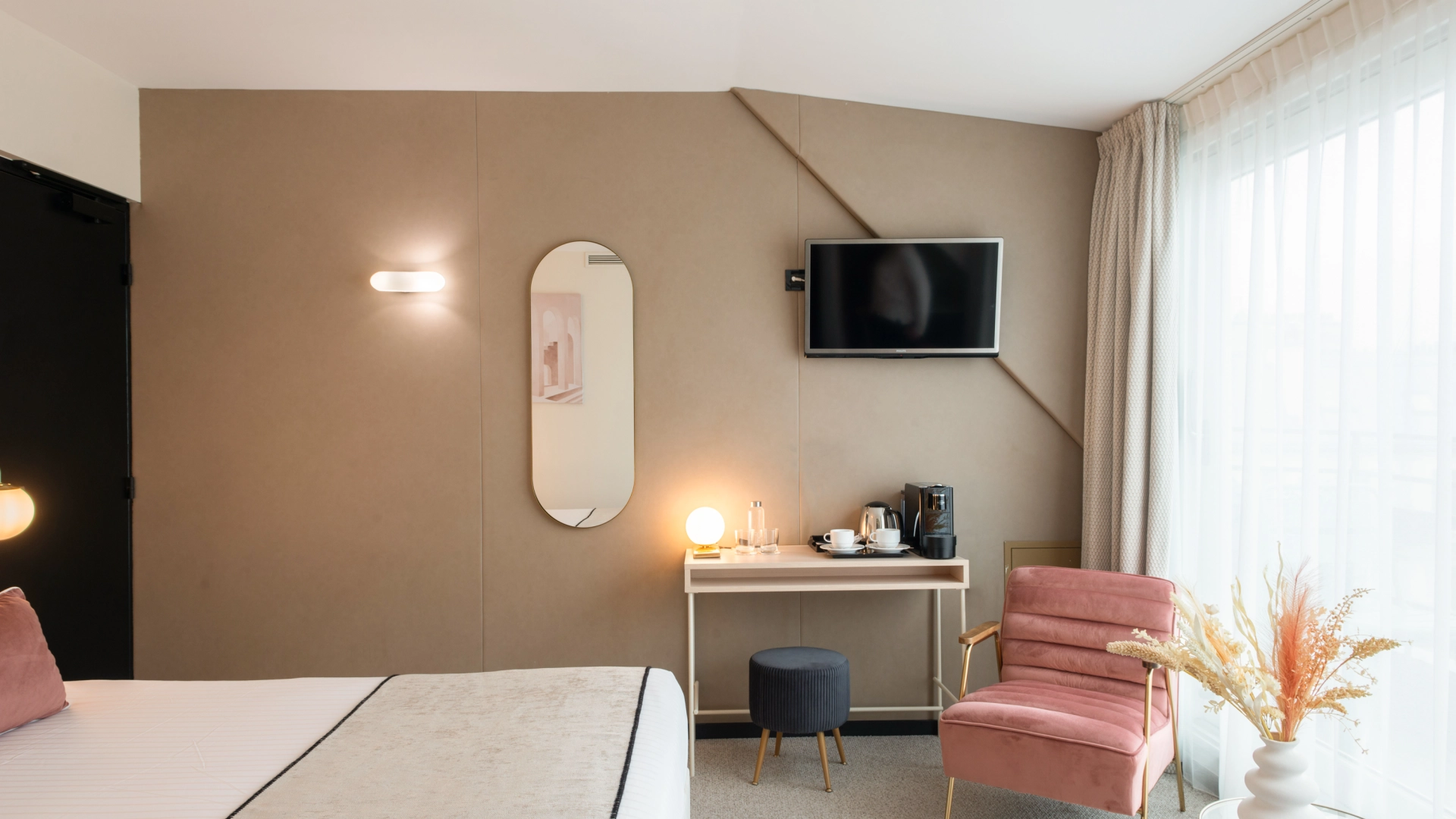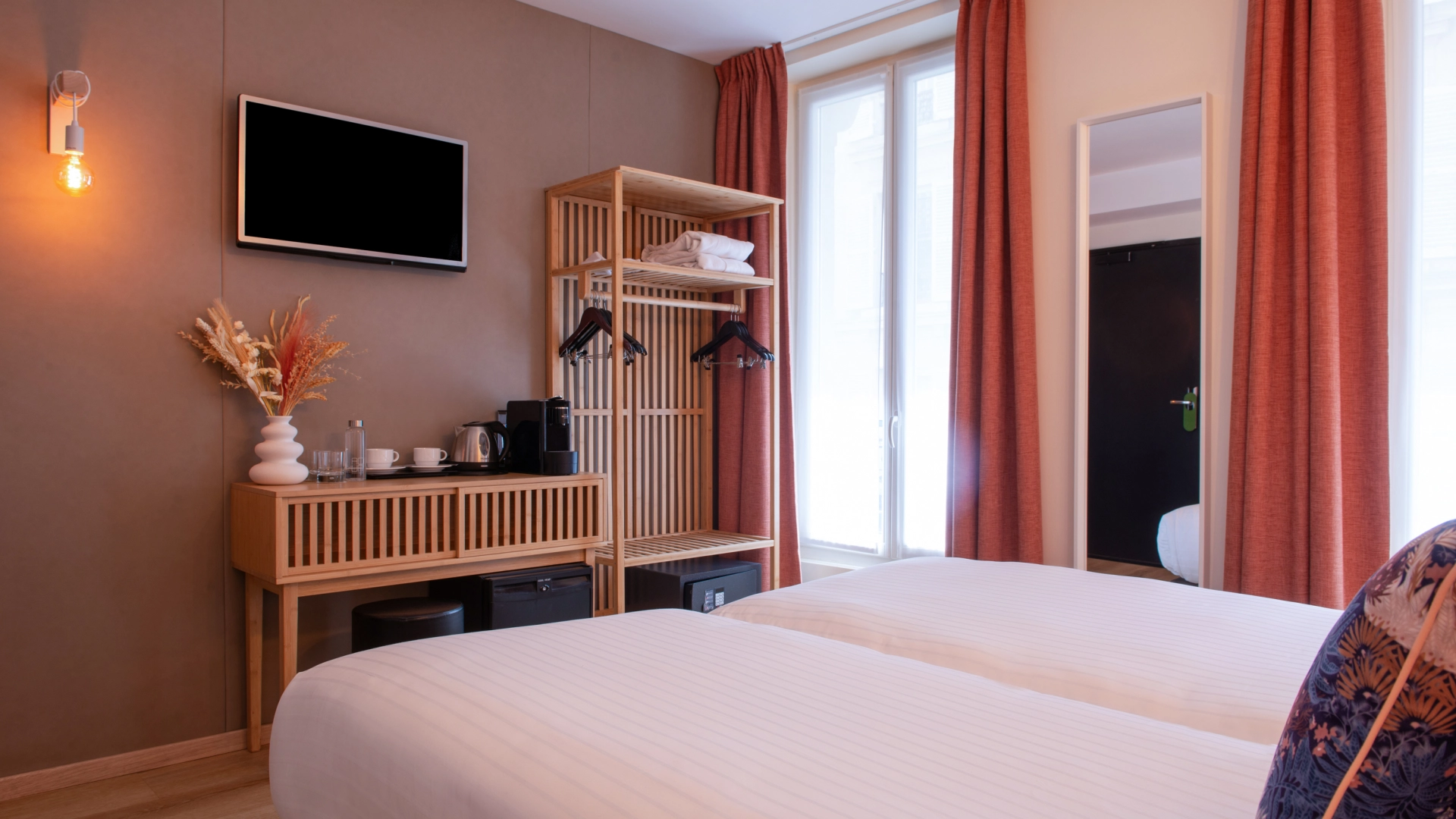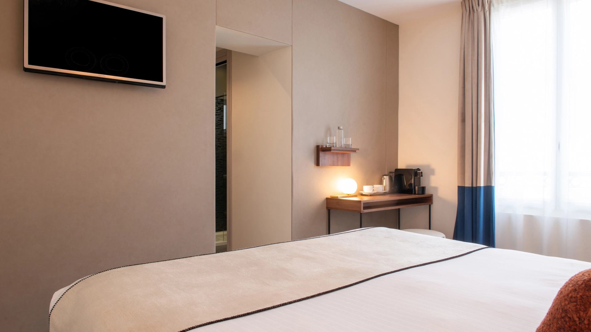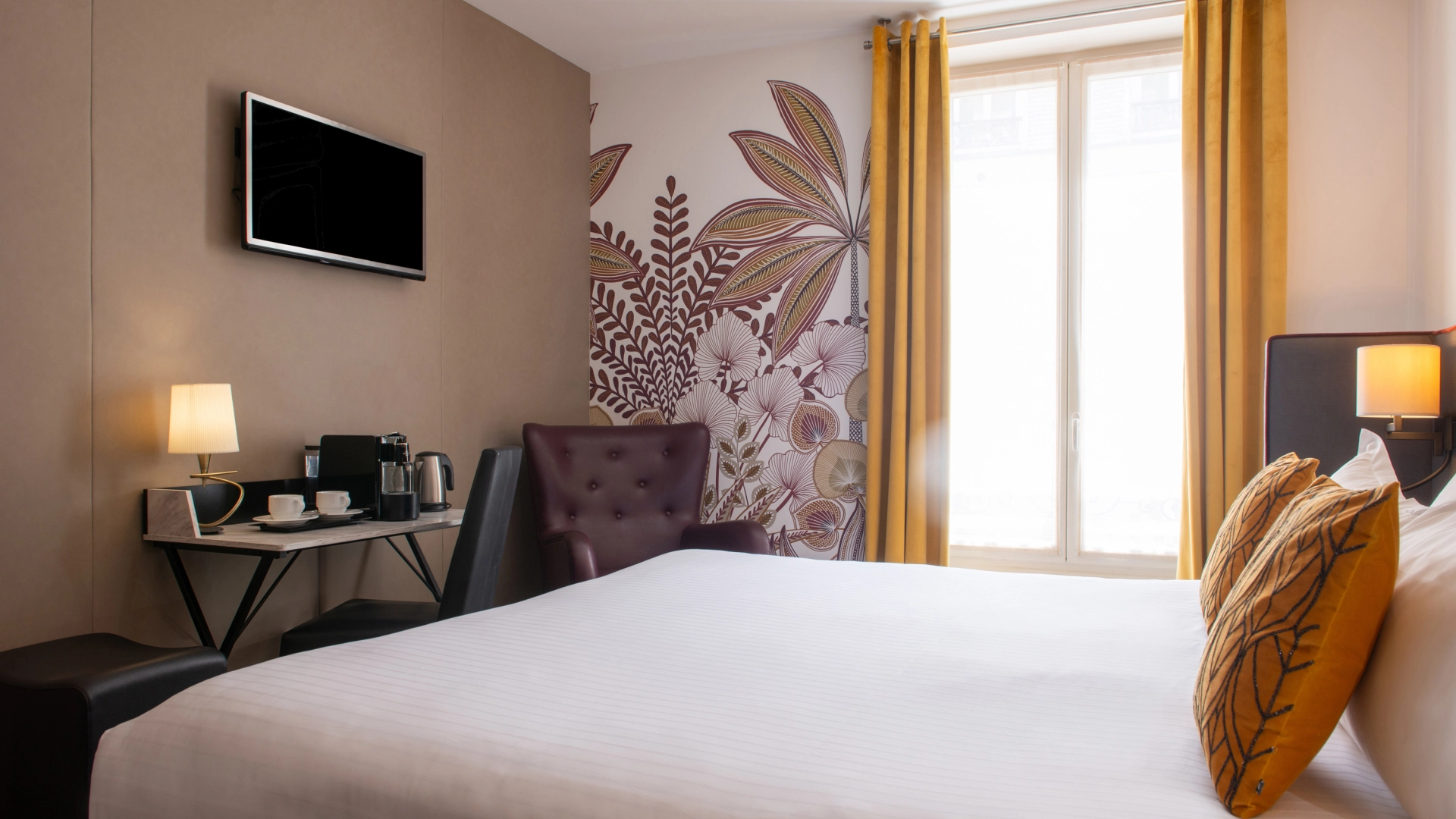 À l’Hôtel Helussi, chaque chambre a été pensée comme un lieu de repos intime et accueillant. Calme, lumière et harmonie s’invitent dans chaque détail, pour vous offrir un séjour tout en douceur au cœur de Paris.